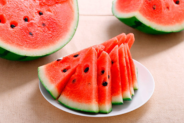 西瓜中除了含有大量的水分外,还有胡萝卜素、维生素、糖、铁等大量营养素,有非常高的营养价值,可以清热解毒、解暑、止渴利尿,但因其含糖量较高,血糖高的孕妇需要注意。