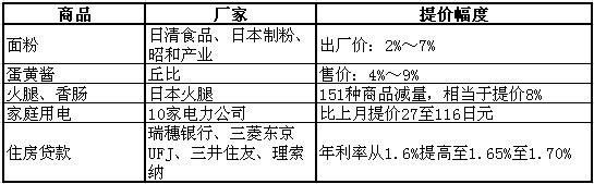 由于进口肉类价格上涨,食品加工企业日本火腿对151种商品进行了减量,相当于提高了单价。另外生产色拉酱的日本丘比食品公司、以及面粉和面包厂商也加入了提价行列。(张丽娅)