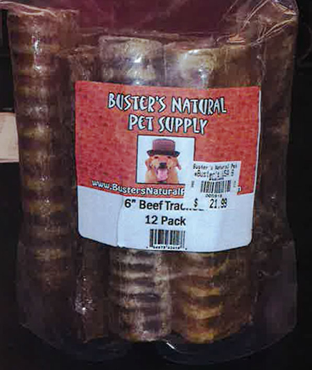 本次受召回的狗粮为牛肉管(Beef Trachea),品牌为“Buster's Natural Pet Supply”,召回数量为1500单位,条形码为8501450。在科罗拉多州的莱克伍德、Conifer有售。
