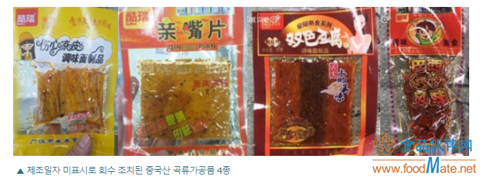 9月20日,韩国食品药品安全处(MFDS)发表消息称:韩国某食品企业从中国广汉市泰鑫食品厂(GUANGHAN TAIXIN FOOD FACTORY)进口、销售的“伤心凉皮”(食品类型:谷类加工品)等4种产品因未标示生产日期,命令其停止销售并召回相关所有产品。