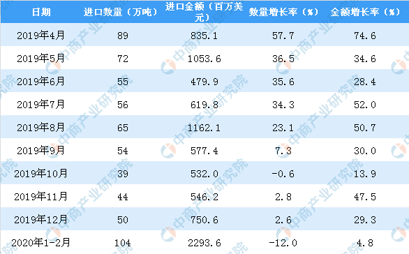 据中商产业研究院数据库显示,2020年1-2月中国鲜、干水果及坚果进口量有小幅度下降,2020年1-2月中国鲜、干水果及坚果进口量为104万吨,同比下降12%。
